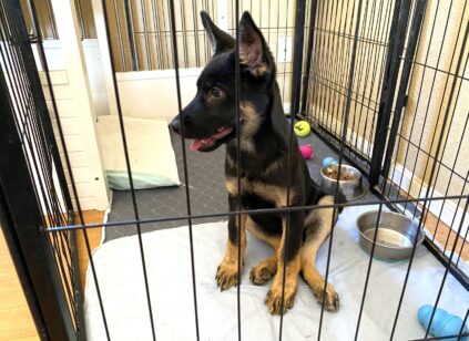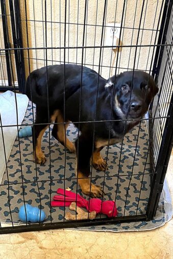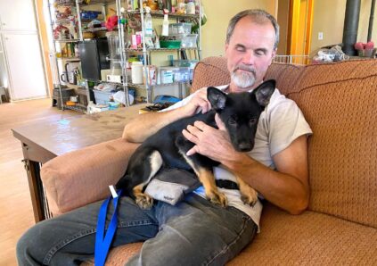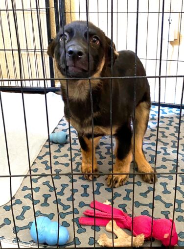 A Hornbrook landowner found Roxy wandering on their property and took her to the county shelter. Without the means to care for her, Siskiyou County Animal Control handed the puppy over to Rescue Ranch. Something wasn’t right: she was listless and straining with constipation. Then her temperature spiked. Fearing a spinal injury, Sanctuary staff rushed Roxy to Animal Medical Hospital (AMH) first thing Monday morning. Vets discovered a large abscess near her rectum and started her on a round of antibiotics. Monday evening, the abscess drained and Roxy perked up. Within days, she rebounded. Her puppy energy resurfaced, revealing her spunky nature.