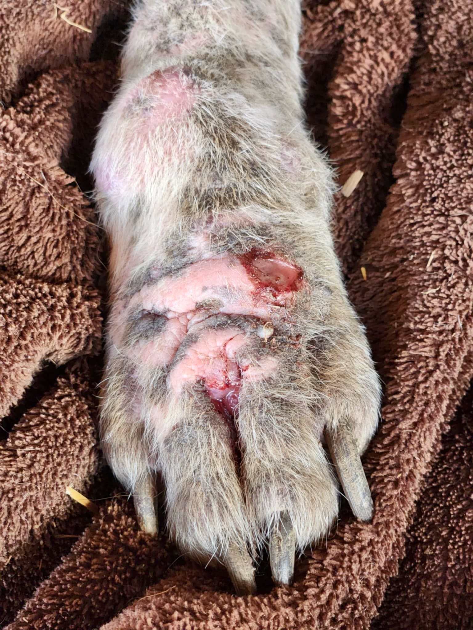 Home » 3 Dumped, Neglected Dogs Welcomed By Rescue Ranch Sanctuary » Neglected_dogs_intake_paw