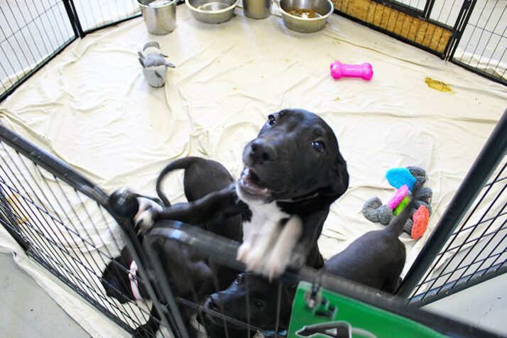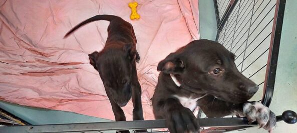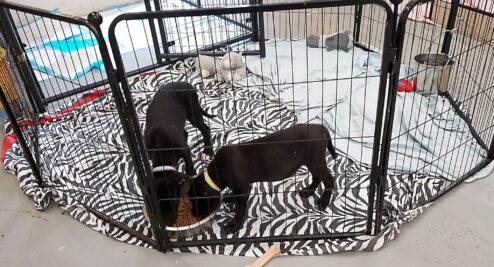 August 20, 2023, wasn’t one of our hottest days this year, but temperatures in the area did rise to 94 degrees in places. Thankfully, given its location, the puppies probably benefited from some light shade throughout the day. That being said, a thick, rubber flap afixed with wire covered the crate’s opening. Without the usual front grate, airflow was limited. Meanwhile, the four, small, closely packed bodies added to the ambient heat. The puppies had no water.