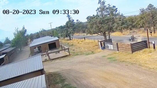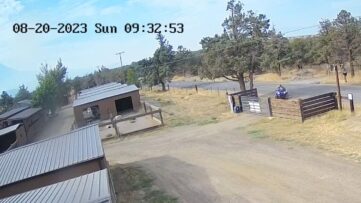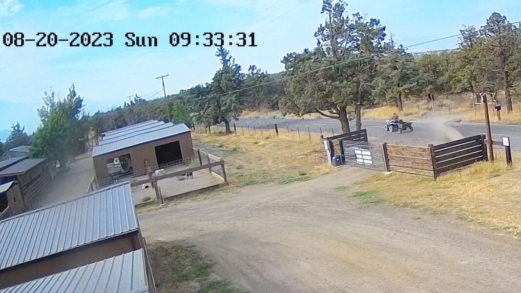 9:32:53 -9:33:31 a.m. An ATV pulls up to the gate and dumps the puppies