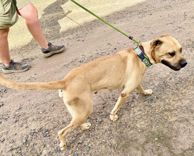 In September 2023, a long-legged male dog was found wandering in wretched condition in the desert in Riverside county, California, and brought to the shelter in Coachella. We’ll never know exactly why he was out there alone. Like so many other unwanted pets, he was probably abandoned.