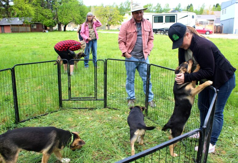 Last Saturday, Rescue Ranch joined Sanctuary One for a dog adoption event at Red Dog Pet Supply in Jacksonville, Oregon. The day started out quiet but attendance soon ramped up and visitors came with purpose. All told, the event was a success for both organizations: each left with several pending adoptions. Additionally, one lucky Rescue Ranch pup got the next best thing: a foster home. It was a good day!