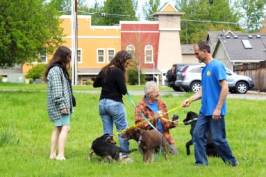 Puppies in particular benefit from exposure to new situations and people. Of course, they should be reasonably well-adjusted to begin with: we don’t want to overwhelm them if they aren’t ready. It speaks to the success of the Rescue Ranch Puppy Program that all of our puppies embraced the experience, happily interacting with children, adults, and other dogs.