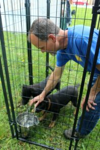 Sanctuary One brought a smaller contingent of dogs but featured adults as well as puppies, including a couple of smalls. I watched as Colleen Avery and her team finished preparations. Between us, we had a good selection for attendees to choose from, and they did.