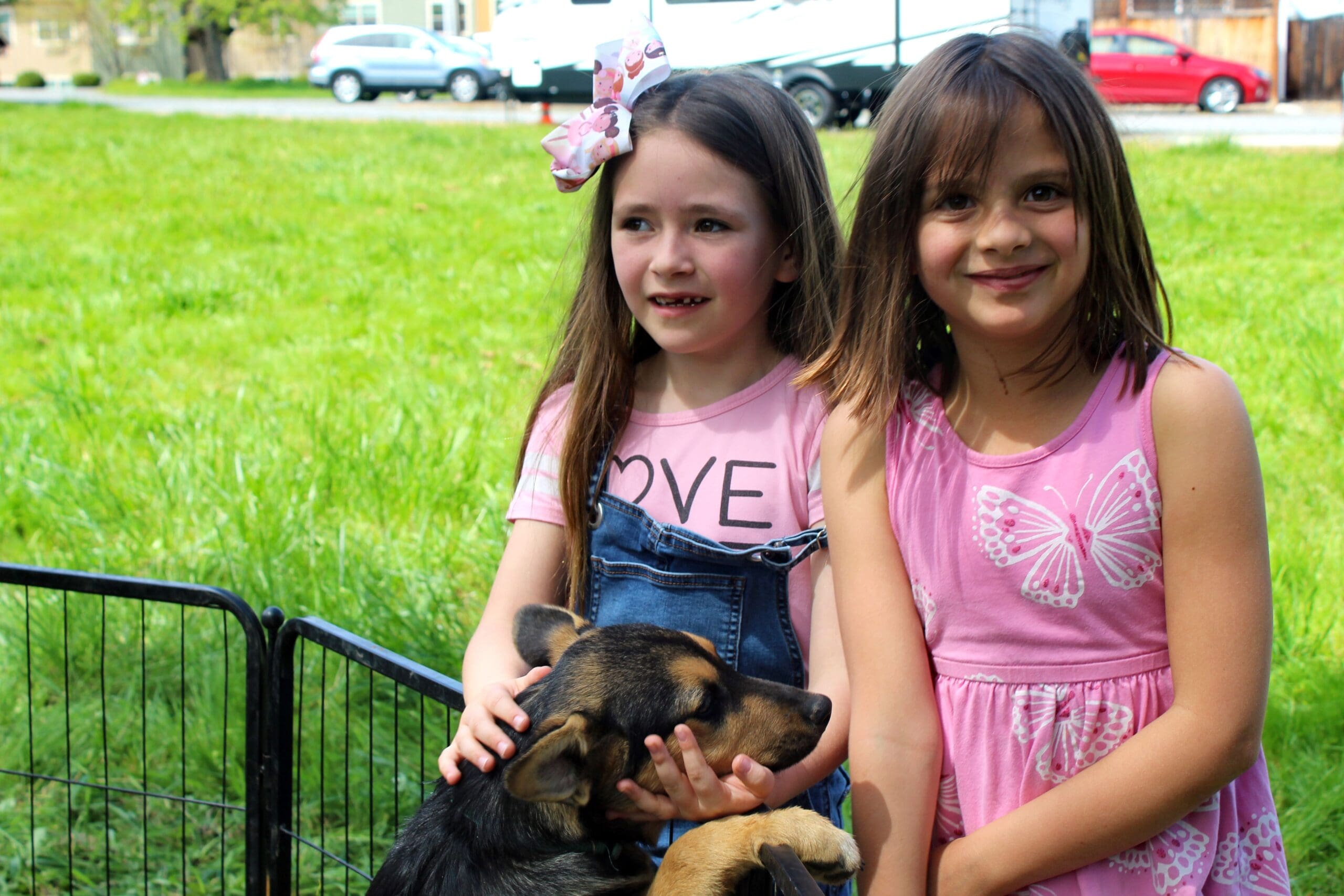 Home » April Dog Adoption Event Leads To New Families For Some Lucky Puppies » Dog adoption_Children petting corgi mix pup 1