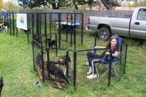 Home » April Dog Adoption Event Leads To New Families For Some Lucky Puppies » Dog adoption_Corgi mix pups and young volunteer