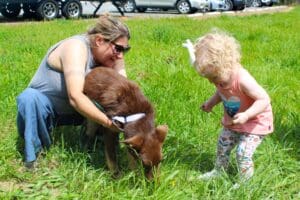 Home » April Dog Adoption Event Leads To New Families For Some Lucky Puppies » Dog adoption_foster Shannon with Peony and adopters child 1