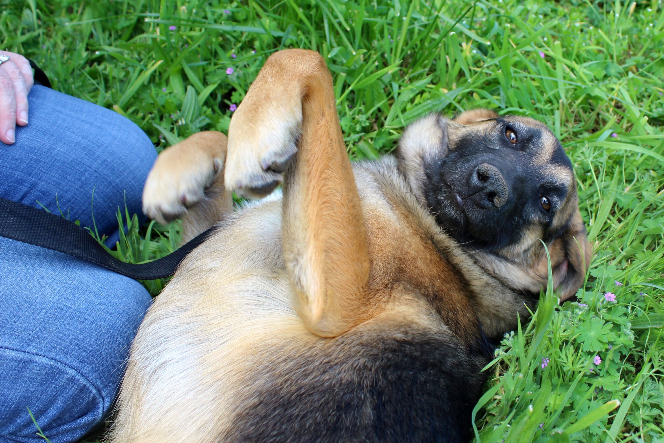 Dog adoption_Tramp posing on his back