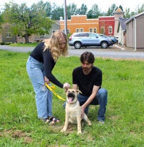 Home » April Dog Adoption Event Leads To New Families For Some Lucky Puppies » Dog adoption_Visitors spending one-on-one time with Joanna