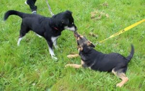 foster pup Dolly meeting RR shep pup 2