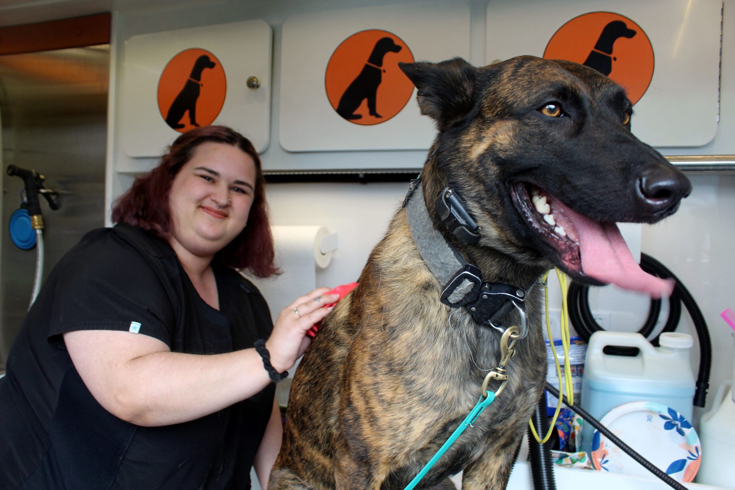 Home » April Dog Adoption Event Leads To New Families For Some Lucky Puppies » Furryland dog groomer_Brushing Esper 1