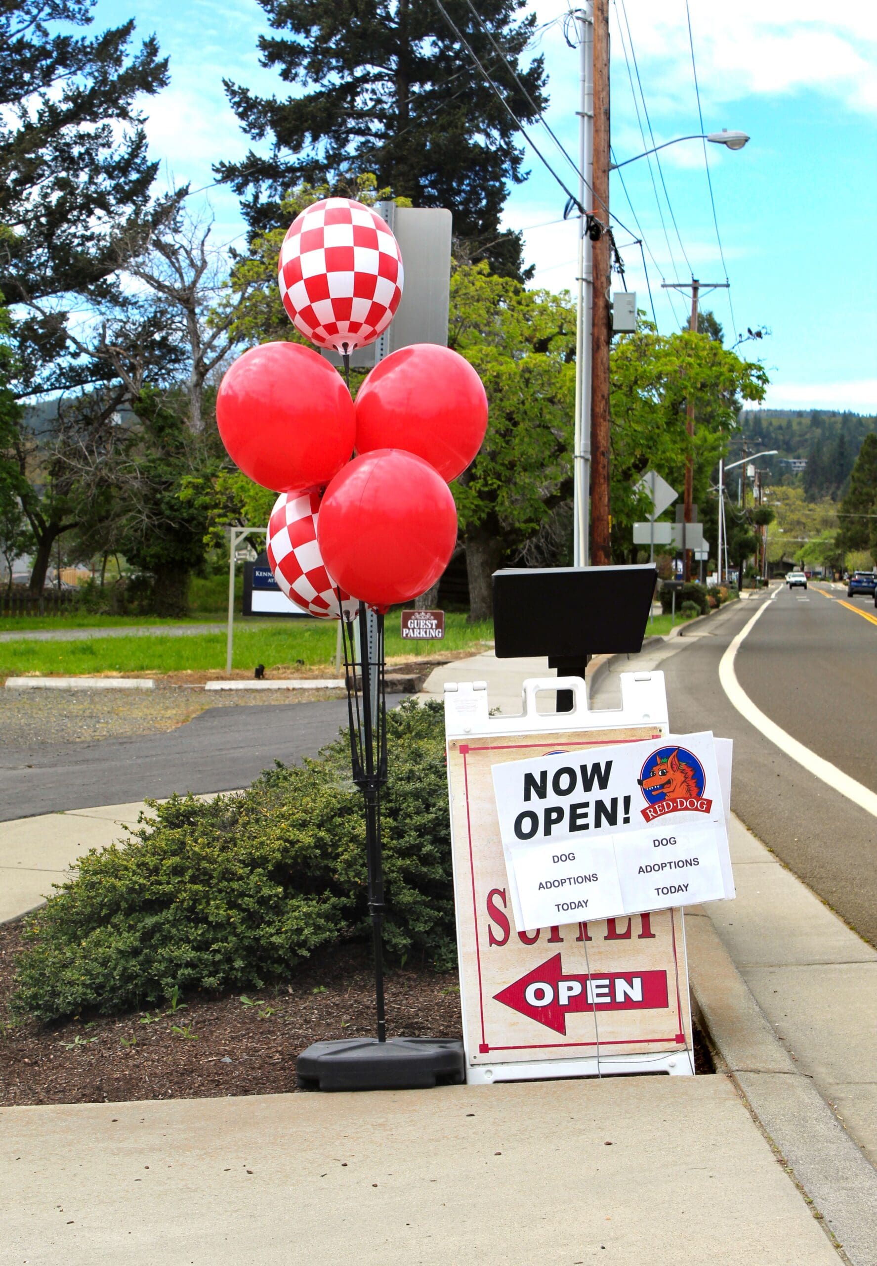 Home » April Dog Adoption Event Leads To New Families For Some Lucky Puppies » Red Dog Pet Supply balloons