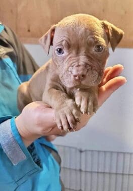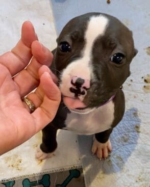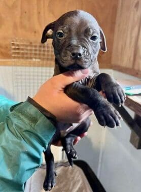 The first box was discovered by a kind-hearted person near a bank of community mailboxes with a sign reading “Free Puppies.” The tiny pittie puppies inside were barely four weeks old.