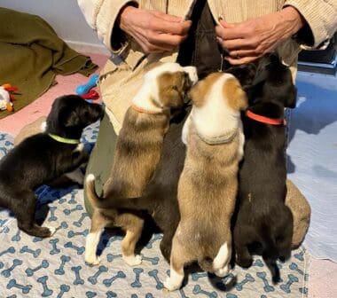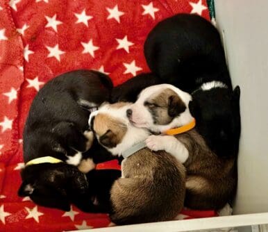 When you hear the phrase “puppy season,” you probably think of spring. But here at Rescue Ranch, we’ve learned to expect a second influx of puppies beginning in the late fall. Well, it’s here: winter puppy season is underway. Within two weeks we’ve taken in two different litters of abandoned puppies left in boxes by the roadside.