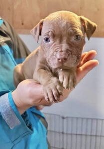 Home » Curbside Puppy Rescue: Rescue Ranch Saves Two Litters Abandoned By Road » Halloween_pittie_tan_in_hand