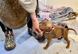 Home » Curbside Puppy Rescue: Rescue Ranch Saves Two Litters Abandoned By Road » Halloween_pitties_puppy_Laura_stooping