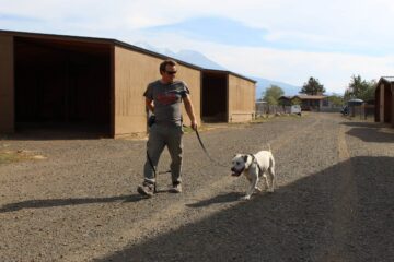 While it is a great facility, the high energy and close quarters of the Adoption Center are less than ideal for long-term residents like Rodeo. After a year and a half, and with no adopters in sight, he was recently moved out to the sanctuary. There, the dogs are a less confined and are able to relax more easily in a more leisurely environment.