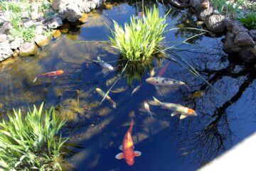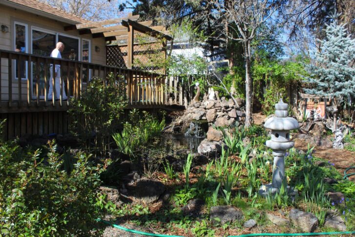 It took a minute for Miss Molly to shake the cobwebs, but she was intrigued by the unexpected visitor in her home. Rajiv led us out through the kitchen onto a wide deck overlooking the back yard and an outdoor pond populated with colorful koi. I remarked that they looked to be at least one and a half feet long. Rajiv replied that they had been only 2 inches when he introduced them 35 years ago!
