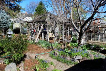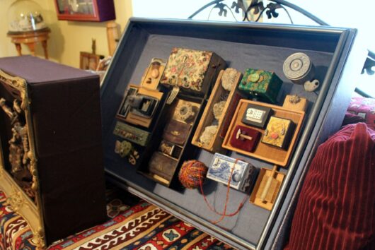 Back indoors, Rajiv gave me the grand tour. He showed me photos of his sons and his guru, as well as his found object creations. He’s an accomplished artist, and his work is featured throughout the house. The pieces reflect the many facets of his inner and outer world journeys. They’re rich in symbolism and assembled with a storyteller’s sensibility.