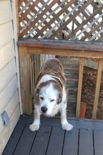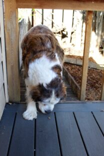 When we headed back to the house, our senior girl wasn’t in any hurry to go back inside, now that she was fully awake. But we enticed her up the ramp with a tiny treat, a kibble.