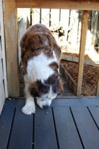 Home » Dog Foster Opens Loving Home to Special Needs St Bernard » Special Needs St Bernard_Molly returning to the deck at top of ramp