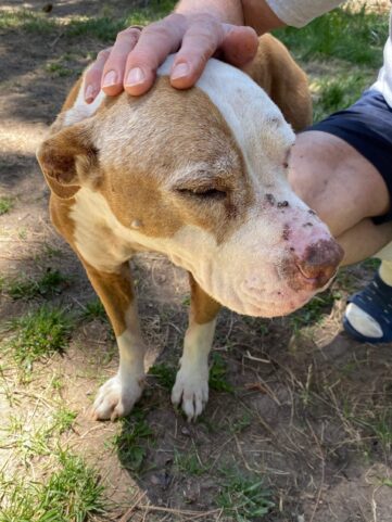 I was working the front desk at the Ranch in early June when I received a call from a man who had found an abandoned dog on his property. He lived in an out-of-the-way rural area, and the dog had clearly been dumped there. He couldn’t take her in, but he told me he had put out some water and a blanket in the shade. However, she was in such bad shape, he was afraid she might die if she didn’t receive care soon.