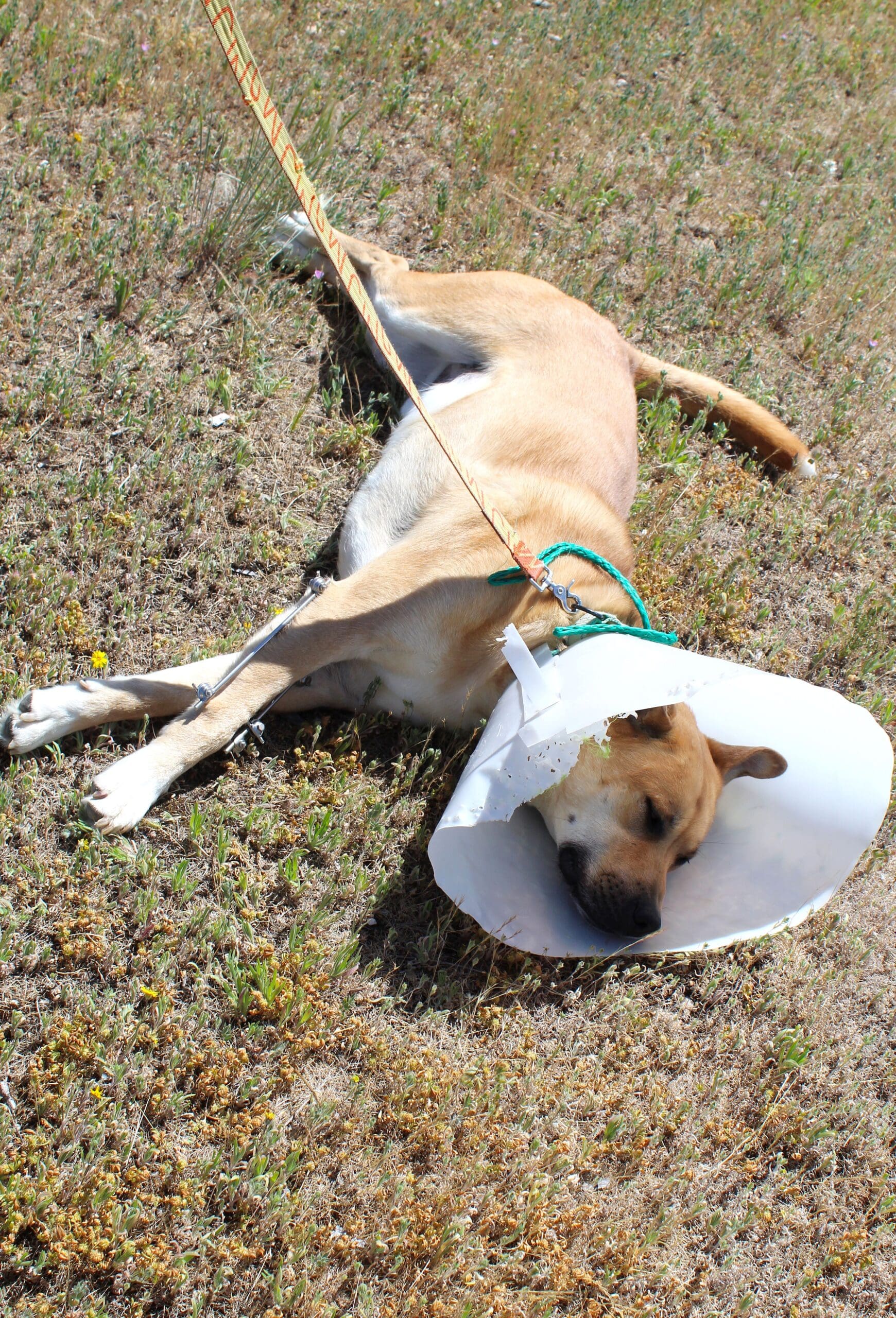 Home » Dog Shot In The Leg-Saved By Good Samaritan & Now On The Mend » Red Red stretched out on grass OH 2