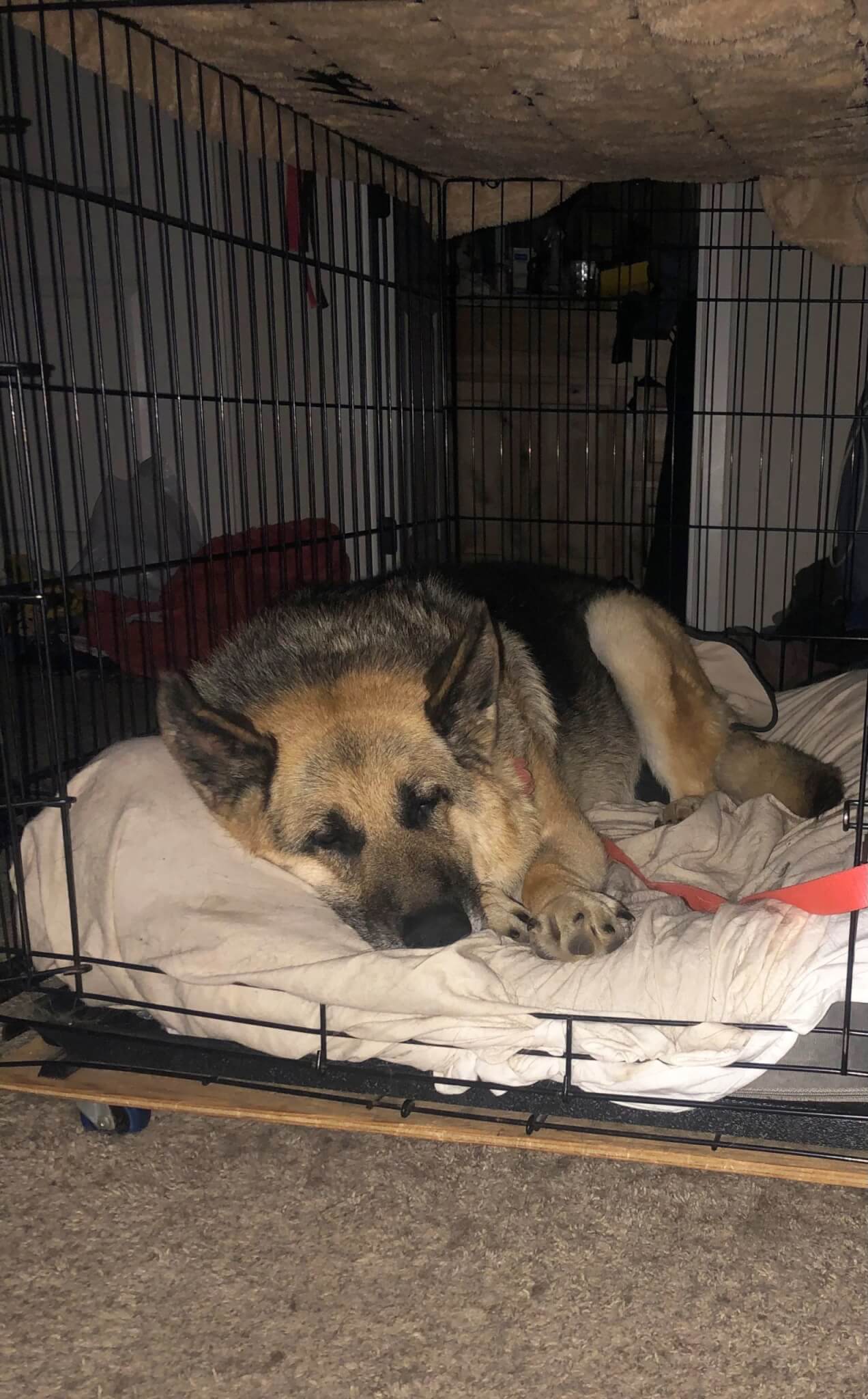 Home » Doggy Foster Home: The Right Solution For GSD with Special Needs » Doggy Foster Home_Cleo in her crate