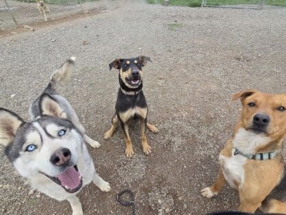 Claire walks well on leash, knows Sit and Wait, and rides nicely in the car. She’s very attentive to her handler and loves treats, so training is simple. She can be strong on leash but listens well and is easy to correct. She likes to stay close to her humans, so she’ll excel as an off-leash companion as well. No need to worry about meeting other hikers with this gal. Claire loves making new friends with humans and other dogs. She gets along with a wide range of puppy playmates here at the Ranch, so she’s a natural for the dog park. And she loves kids!
