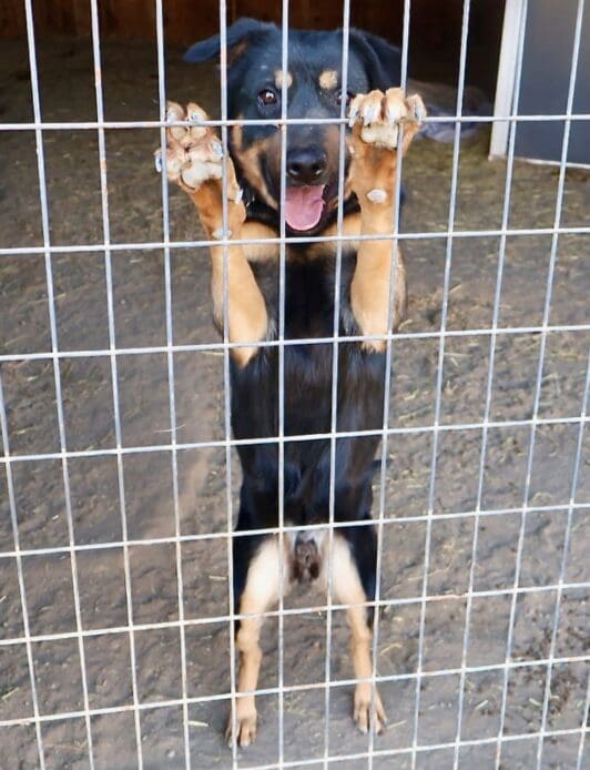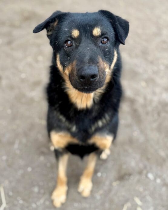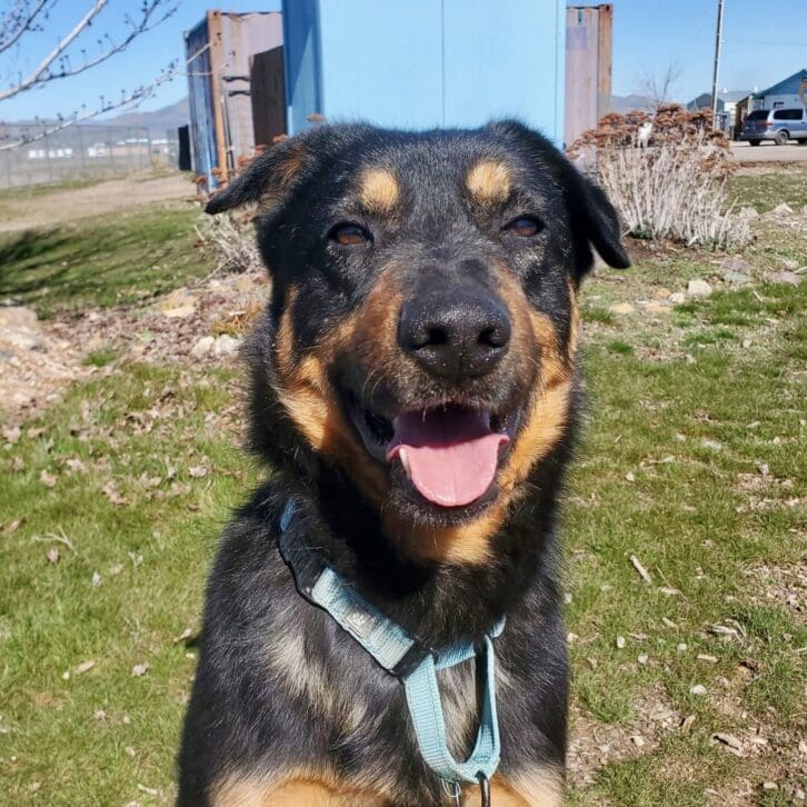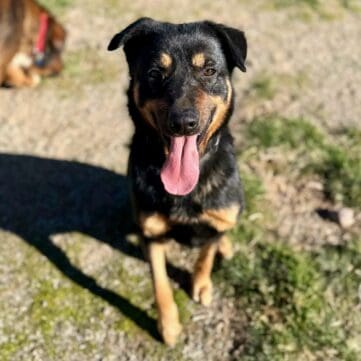 Good-tempered Dennis is a staff favorite here at the Ranch. He’s friendly, mellow, easy-going, and loves goofing around with other dogs. He does great with both male and female dogs and is even patient with our adolescent puppies. Dennis loves to romp and play, but he’s even more happy to be given one-on-one attention. He’s alert and watchful but eager to accept new friends. And though he’s not a clingy boy, he loves cuddles. His medium size and moderate energy level are perfect for gentle walks and other low-key adventures. He’d love to visit the dog park and he’d thrive in a neighborhood with lots of canine neighbors. He’s well-mannered, easy to please, walks well on leash, knows Sit, and is even crate trained.
