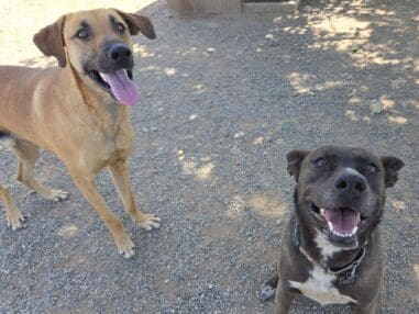 Affectionate, lively Freya can hear a ball drop a mile away. Playing fetch is her favorite activity, since it combines the two things she likes best: balls and humans. She’s an intelligent girl who loves to learn and make people smile. At five years young, she’s outgrown her crazy teenage years but has lots of energy for all kinds of adventures. She’d make a top-notch walking, jogging, hiking, or biking partner for an athletic adopter. But she’s also a wonderful family dog, always ready to join in the fun. Freya knows her basics and walks nicely on leash. And when the humans are busy, she enjoys romping with her doggy companions. She gets along well with other dogs, even keeping rowdy pups in line. Dog park anyone?
