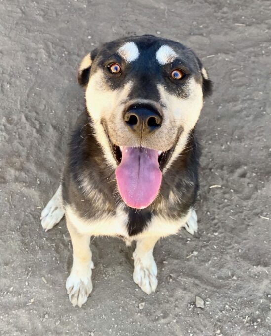 Gregarious Guppy loves to be with people. He’s docile and versatile, and has starred in youth workshops, on a canicross team, and in a 5K race with dozens of participants. He’s even tried his paw at agility! After all this practice, Guppy is leash-trained, crate-trained, house-trained, and rides quietly in the car. He’s also super social and relaxed around other dogs. This makes him easy to handle out and about. He’d love to visit the dog park, go for hikes and jogs, and join you for all kinds of fun adventures! At the end of the day, Guppy will gladly relax beside the fire. To top it all off, he makes funny faces for the camera. This pooch is a blogger’s dream come true!