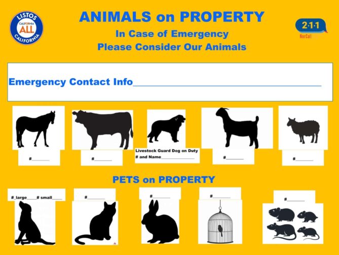 Rescue Ranch is the Designated Dog Evacuation Center for Siskiyou County, but if you have other animals or live in another county, you should know whom to contact and/or where to go.