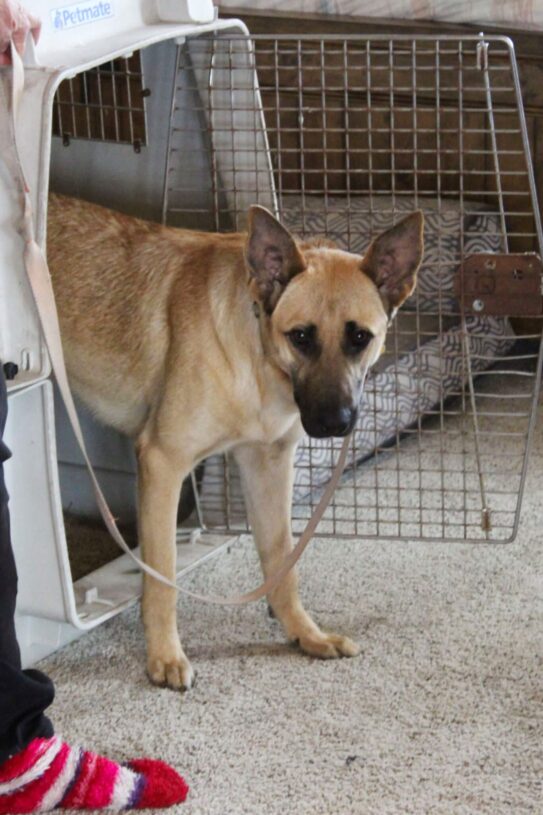 Although Kenna still has a long way to go, she’s made excellent progress with Judy. She now takes treats directly from Judy’s hand, has learned to use her crate, and walks on leash. Judy says it took six weeks for Kenna to accept the leash.