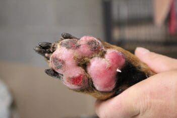 Despite the irritated skin, Presley is as cheerful and friendly as I remember. He’s a senior now, with a distinguished salt-and-pepper muzzle, but he still loves attention and is eager to enjoy life. Hard to believe it’s been almost five years since I met this heroic fire survivor.