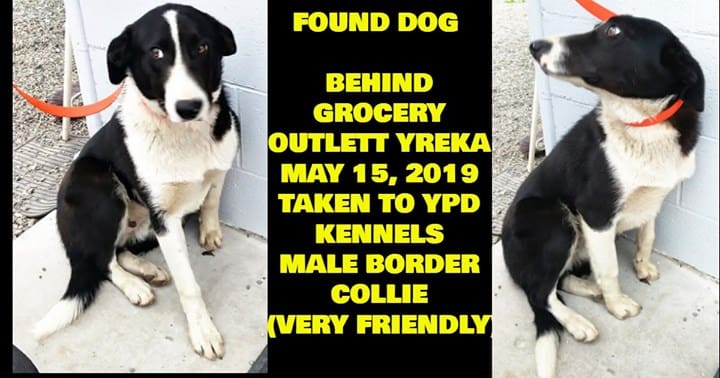 Found Dog – Male Border Collie- behind Grocery Outlet Yreka, Ca 5/15/19 – VERY FRIENDLY – Taken to YPD Kennels PLEASE SHARE