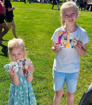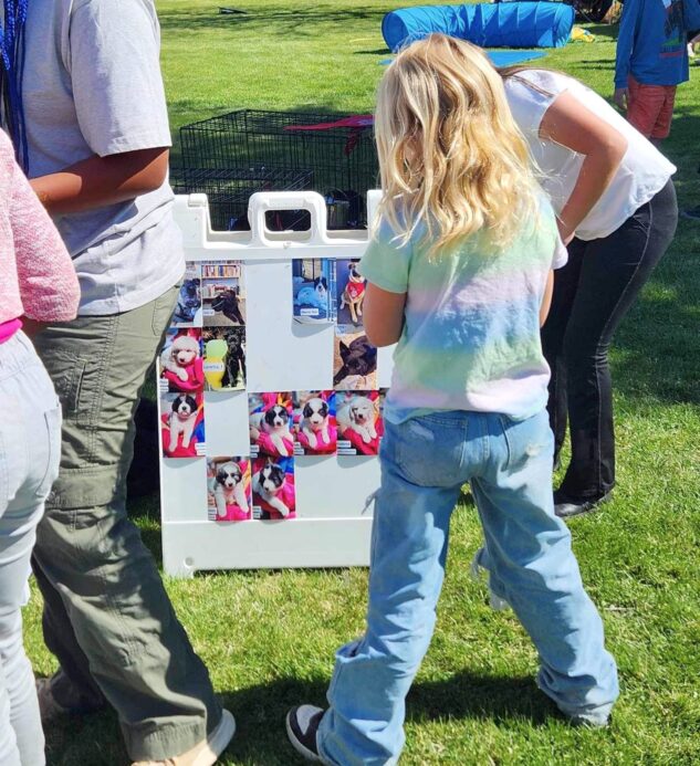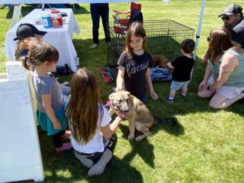 The sheer number of families and children that turned out for the annual festival was impressive. It was easy to see why supplies had run dry: Karen would have had to create hundreds of clay dog paw prints to ensure every child got one. The three Rescue Ranch puppies who were onsite for a little socialization, attracted plenty of interest. Nine-month-old Emmett and six-month-old Paddington were soon overwhelmed by the hubbub and preferred to rest in their crates. Sociable Jade, on the other hand, made friends readily and soaked up all the attention she could get.