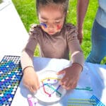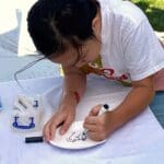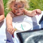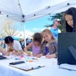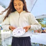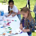 It was a huge success. The festival began at 10 am, and by the time I arrived less than two hours later, Karen was already fresh out of the clay dog paw prints. Fortunately, she had also brought a stack of small paper plates and quickly switched to drawing paws on them for visitors to decorate. The kids had fun deciding what kind of paw they wanted on their plate: Chihuahua, great Dane, black Lab… Some even drew their own. I enjoyed the deep concentration on their faces as they colored in their paper plate art.