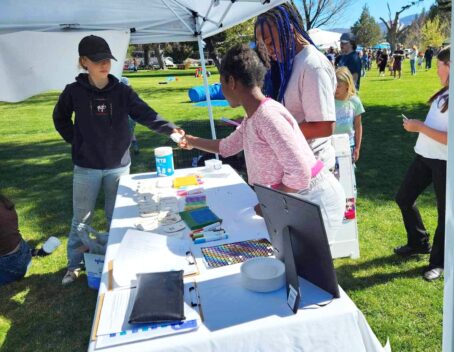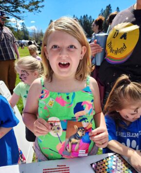 When are dog paw prints fun? When they bring together puppies and kids! Rescue Ranch collaborator Karen Topping of Meghan’s House Rescue has a knack for finding creative ways to reach young minds. Thanks to her, on April 20, the Rescue Ranch booth at the “Annual Kids Day! Festival” in Weed was a hit. Young visitors had a blast and made a connection with shelter dogs in the process. Better still, many of their original art pieces were co-created with Rescue Ranch puppies!