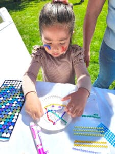Home » Fun Dog Paw Prints Bring Kids & Rescue Pups Together At Annual Festival » Dog Paw Prints_Child decorating print on paper plate at RR booth 1