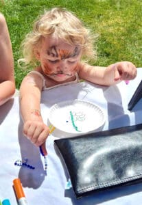 Home » Fun Dog Paw Prints Bring Kids & Rescue Pups Together At Annual Festival » Dog Paw Prints_Child decorating print on paper plate at RR booth 2