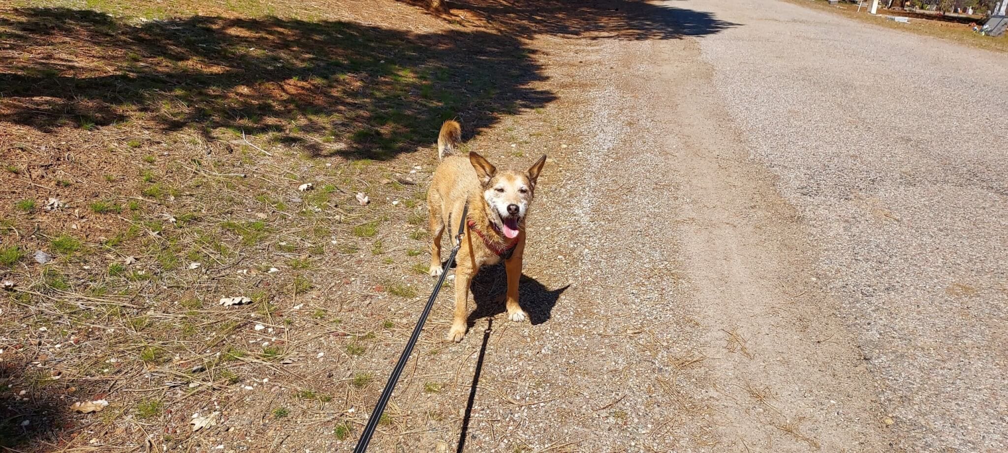 Home » Goodbye Winter Blues—5 Ways To Get Active With Your Dog This Spring » Herbie on walk in cemetary
