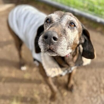 - Sadie: a sweet senior hound who’s simply miserable in a kennel.