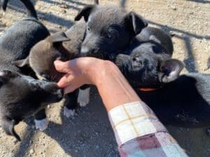 Home » It’s Fall! Rescue Ranch Welcomes 26 Orphaned And Abandoned Puppies » Black_tie_pups_nibbling