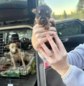 Home » It’s Fall! Rescue Ranch Welcomes 26 Orphaned And Abandoned Puppies » Tiny_stray_puppy_mom_in_crate