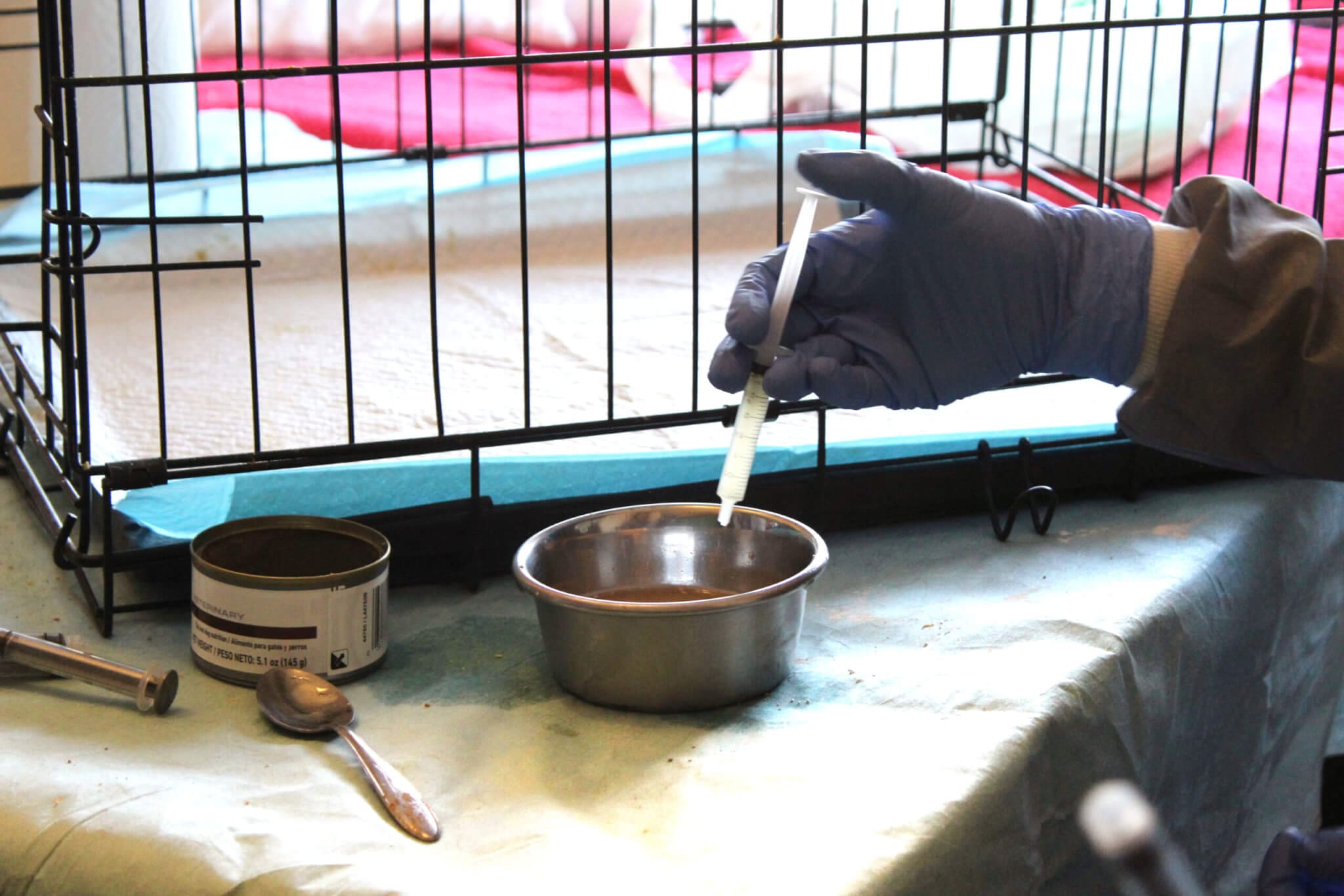 Home » Parvo Puppies Cared For Round The Clock By Rescue Ranch Sanctuary Staff » Parvo puppies_Filling syringe with support formula