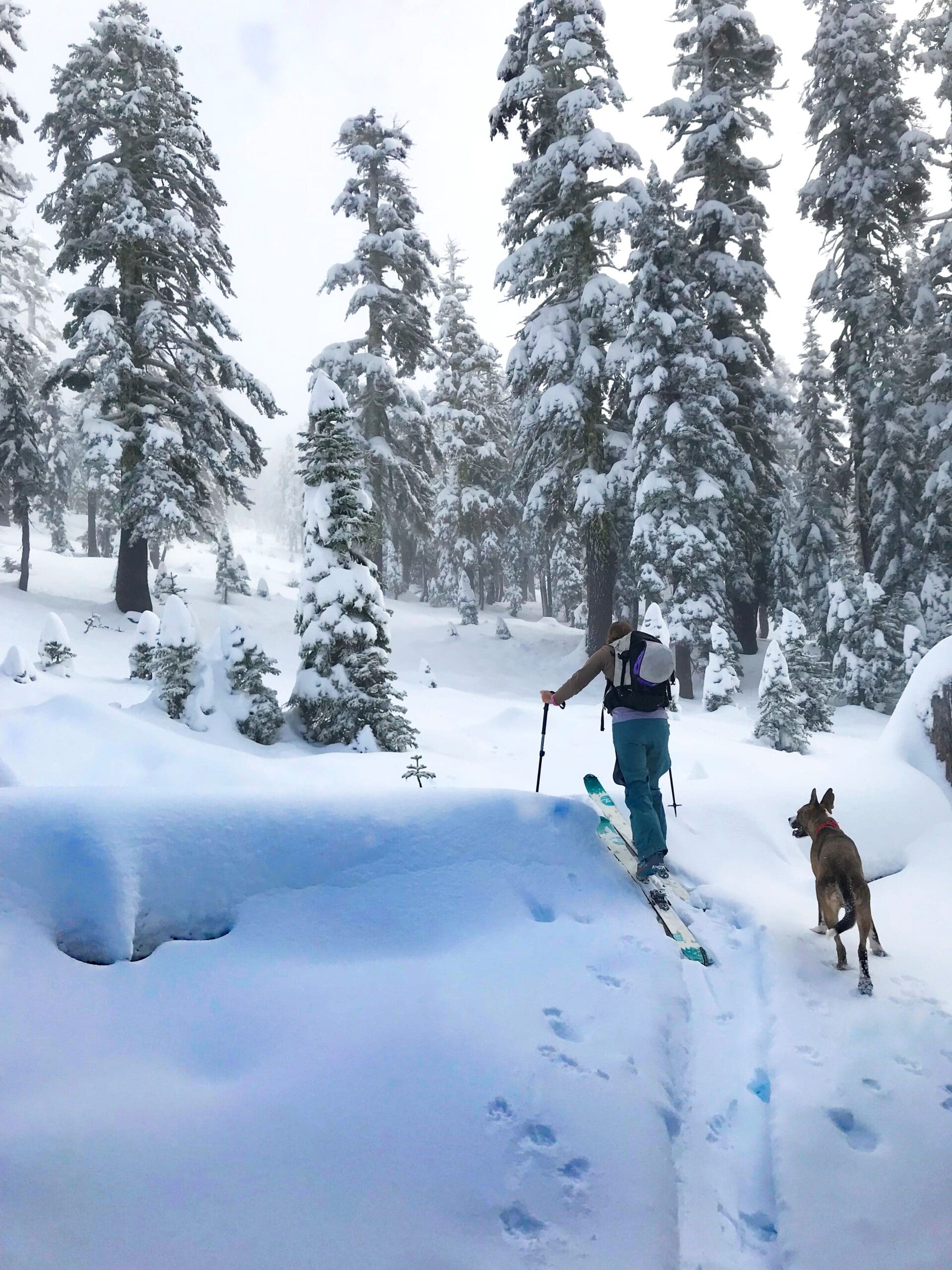 Home » Perfect Matches: Catching Up With 2 Lucky Rescue Ranch Dogs » Perfect matches_Casey & Larry skinning up a snowy trail