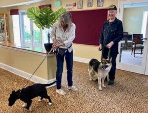 Home » Pet Therapy With Rescue Ranch Pups Brings Joy to Senior Living » Bob_grinning_Bronco_Mary_Pet_Therapy