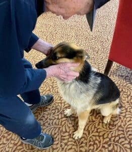 Home » Pet Therapy With Rescue Ranch Pups Brings Joy to Senior Living » Bob_hands_Bronco_Pet_Therapy