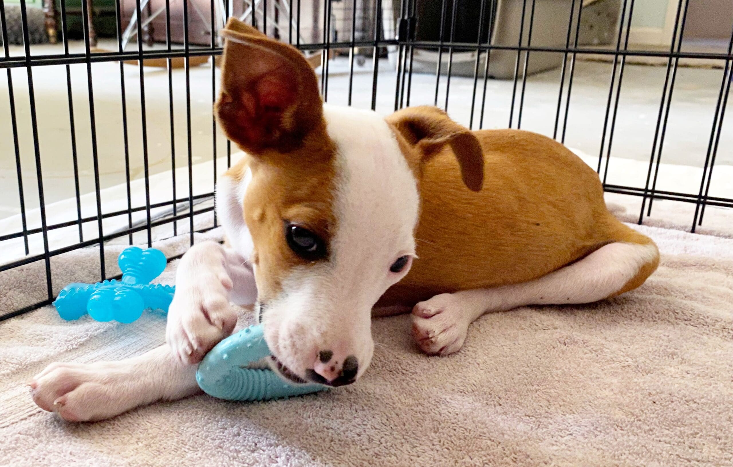 Home » Puppy Teeth: Helping Your Mouthy Pup Learn To Play Nice » Puppy teeth_ Puppy with chew toy_2